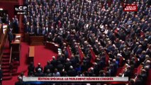 Debout après le discours de François Hollande, le Congrès entonne la Marseille