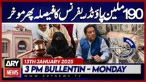 ARY News 3 PM Bulletin | 13th JAN 2025 | 190 million pound reference decision postponed again