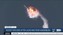 Shortly after, it begins to break apart and then explodes in a fiery blaze before crashing to the ground near the launch pad.