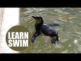 A tiny little penguin has started swimming lessons after they were neglected by their parents