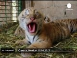 The first white Bengal tigress cub to be born in captivity in Peru is the newest attraction at a zoo in Lima. Presented to the media for the first time, the 42-day-old, blue eyed cub could be seen enjoying the comforts and distractions of her nursery.