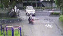 Une voiture qui arrivait à contresens et à pleine vitesse est passée juste à côté d'un motard. En gardant son clame, il a réussit a garder sa trajectoire. Respect.