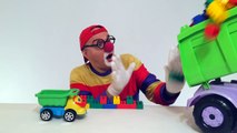 Dima der lustige Clown und der Lastwagen spielen mit Bausteinen! Toller Spass für Kinder