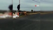 İki amcaoğlunun aldığı koçu araçla götürmeye çalışması, ortaya bir hayli komik görüntüler çıkardı. Koçla birlikte arka koltukta seyahat eden şahsın, boynuz darbeleri nedeniyle yaşadığı korku dolu o anlar internette tık rekoru kırıyor. Bir hayli ilginç diyalogların da yaşandığı yolculuk vatandaşın koçtan kurtulmaya çalışması ile sona eriyor.