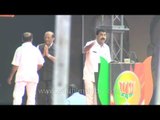 On the massive stage, 80 by 40 feet, Mr Modi in white kurta pyjama, is flanked by leaders like Niitin Gadkari, Vijay Goel and Navjot Singh Sindu in pink turban regaling the crowds with Sidhuisms.
