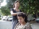 Entrain de se coiffer