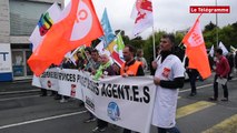 Une centaine de personnes (instituteurs et parents d'élèves) venues de tout le département des Côtes-d'Armor se sont rassemblées, ce lundi matin, devant l'Inspection académique, à Saint-Brieuc. Elles protestaient contre les fermetures de classes annoncées pour la rentrée prochaine. Elles ont souhaité être reçues en marge du comité technique spécial. Le reportage de Gwendal Hameury.