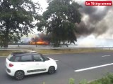 Landivisiau. Un camping-car en feu sur la RN 12