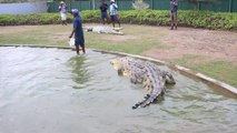 Oui ce dresseur d'alligator et de crocodile est FOU...il nourrit sa bete avc des saucisses qu'i met dans sa bouche! Taré...