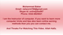If you want to learn online earning course than you can contact us via Email : networm786@gmail.com Skype id: onlinejobs987 Phone: 0322-6625021 or visit my site http://www.seekhoo.com
