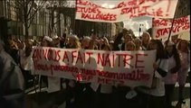 Une centaine de sages-femmes ont manifesté mardi 19 novembre 2013 aux abords du ministère de la Santé où se tenait une réunion consacrée à leur statut. Durée: 01:00