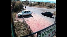 This girl had an accident with her car. Luckily, nobody got hurt. Gotta admire how she keeps her cool though, you'd be bummin' had this happen to you.