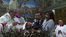 Pope Francis baptised 32 newborn babies in the Sistine Chapel on Sunday.