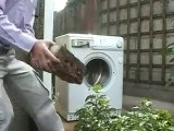 Çalışan Çamaşır Makinesine Tuğla Fırlatmak