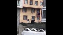 Pencereden düşen çocuğu havada yakaladılar