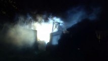 Clown & fallen angel shifting into a devil and different forms behind Obama in the right hand window
