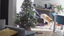 Husky sam w domu z choinką. To fatalny błąd (video)