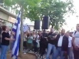 During the memorial ceremony Golden Dawn supporters waved Greek flags and chanted slogans against foreigners living in Greece, such as: "Foreigners Out of Greece".