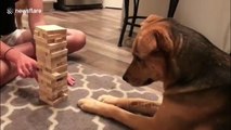 Dog plays Jenga