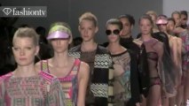 Today on Feb. 13, Examiner.com is excited to share highlights from the Custo Barcelona presentation. Electronic music and bright magenta laser lights opened the show with a colorful 70's robotic theme; the collection was a refreshing splash of color. It was so lively to see this amount of color and patterns in a fall collection. The audience was dancing and enjoying the futuristic colorful collection as well as the overall all look of the models. The models had cool short bangs and straight sleek hair with purple sunglasses.