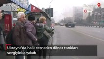 Ukrayna’da halk cepheden dönen tankları sevgiyle karşıladı