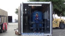 Pure Aqua designs complete water filtration systems as well as containerized carbon filtration systems. A containerized carbon filtration system was custom-made for a mine in the northern United States. The heated container holds five multimedia filtration tanks, each selected from our MF-1000 series, and is capable of producing 520 GPM of clean, potable water. The system is controlled by an advanced PLC, enabling each tank to start its own backwash cycle independently of the other four tanks. For more information, click here: http://www.pureaqua.com/21-water-treatment-products/122-containerized-water-treatment-plants-cwt-series.html