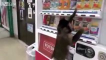 monkey buys drink from vending machine