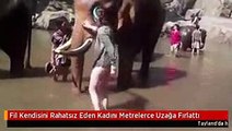 Fil Kendisini Rahatsız Eden Kadını Metrelerce Uzağa Fırlattı