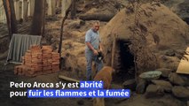 Un four en terre, seul abri d'un survivant pendant les incendies au Chili