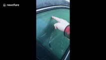 Beautifully styled curse word scribed into frosted car window goes viral