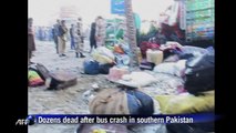 The bus was travelling from Dera Ghazi Khan in the central Punjab province to the port city of Karachi when it hit the vehicle coming from the opposite direction, security personnel said.