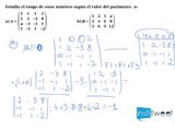 Calcula el rango de estas matrices en función del parámetro t :