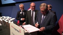 Ségolène Royal, ministre de l’Écologie, du Développement durable et de l’Énergie, et Sylvia Pinel, ministre du Logement et de l’Égalité des territoires, ont tenu une table ronde de la filière bâtiment et signé la convention sur la formation des professionnels du secteur aux économies d’énergie (FEEBAT).