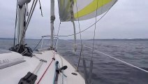 Un superbe dauphin commun croisé en méditerranée au large de Sète nage le long de l'étrave du voilier de voile-sete ( http://www.voile-sete.fr )
