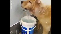 Ce chien a une façon très particulièrement de boire de l'eau !