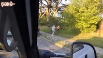 Tren kornası ile korkutan şaka
