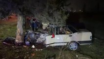 Konya’da sürücünün direksiyon hakimiyetini kaybetmesi sonucu kontrolden çıkan otomobil refüjdeki ağaca saplandı.