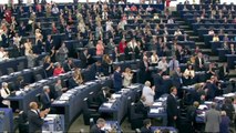 Au milieu des applaudissements, Martin Schulz savoure sa victoire. Le candidat des sociaux-démocrates est réélu président du parlement européen avec une confortable majorité de 57% des votes exprimés (409 voix sur 723 votes comptabilisés).