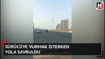 Sürücüye vurmak için araçtan sarkan adam yola savruldu!