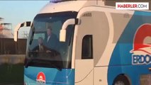 Erdoğan'ı, Kahramanmaraş Havaalanı'nda ilgililer karşıladı.