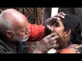 Roadside dentist in action, cleaning and treating a patient at his roadside dentistry stall...