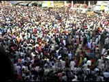The huge processions accompanying the chariots play devotional songs with drums, tambourines, trumpets etc. Children line the streets through which the chariot will pass and add to the mass chorus. The Rath carts themselves are some approximately 45 feet (14 m) high and are pulled by the thousands of pilgrims who turn up for the event; the chariots are built anew each year only from a particular type of tree. Millions of devotees congregate at Puri for this annual event from all over the country and abroad. It is also broadcast live on many Indian, foreign television channels as well as many of the websites telecast jagannath ratha yatra live.