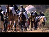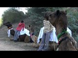 Camel safari through the Chambal region. Adventurers and explorers of the New India tourist kind are taken through the ravines and badlands of the beautiful Chambal river valley, Madhya Pradesh, with armed escorts, just in case...!
