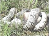 Python eating a Langur monkey in central India, first having caught it, then holding it in a vice-like grip, and then slowly ingesting it, using its strong stomach muscles to knead and swallow the same!