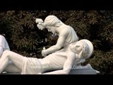 The architect of the Church was Antonio Reghellini, an Italian from the city of Vicenza. The Church is based upon St. Peter's Basilica in Rome with touch of Palladio and some Indian architectural influence. The altar and its surrounds are of marble set with coloured stones. Much of the rest of the interior is also in marble, and everything is of the very highest craftsmanship. It is illuminated from an octagon set in the dome, from which the sun streams in. Reghellini completed the church in 11 years. The church is noted for the use of semi precious stone work, a Greek colonnaded veranda,an elevated altar with a stained glass dome and there are two spires and three Roman domes that add to the building's grandeur. Near the sanctuary is a majestic 18 feet high edifice over the Begum's tomb. Carved by the Italian sculptor Adamo Tadolini and transported to Sardhana from Italy to Kolkata by ship and by boats and bullock carts from there, it depicts Begum Sumru on the throne, smoking a hookah with Europeans and Indians in audience. It depicts her with a scroll from Emperor Shah Alam II bestowing upon her the fiefdom of Sardhana after her husband's death. Also depicted are her adopted son David Dyce Sombre and her diwan, Rae Singh who was the great-grandfather of Motilal Nehru.