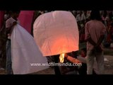 Airborne paper lanterns float in the sky during Dussehra, Delhi