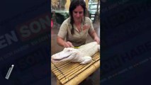 Diş fırçasıyla timsah yıkayan kadın