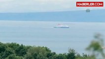 Ege Denizi'nde fırtınalı havada umuda yolculuk yaparken su alıp batmaya başlayan şişme bottaki kaçakların kurtarılma anı saniye saniye görüntülendi.