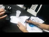 Emmanuel Danann firma la remera de los 150 programas de 'QV4!' FM La Boca