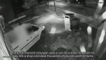 The goofy action results in one criminal caught between the car and the phone shop. He is likely to have seriously injured his left leg. With a damaged car, no stolen goods and one pretty damaged leg the men went on the run.